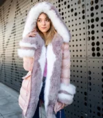 Roze parka sa prirodnim krznom – Anđela